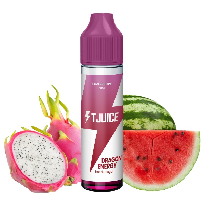 Découvrez l'e-liquide Dragon Energy T-Juice 50ml, une composition fruitée à base de fruit du dragon, pastèque et fruits rouges, accompagnée d'une fraîcheur discrète.