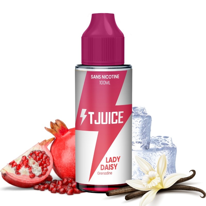 Lady Daisy de la gamme T-Juice New Collection propose un assemblage de grenadine, grenade, cranberry et une note vanillée. Cette composition, enrichie d’une fraîcheur discrète, s’adresse aux vapoteurs à la recherche de saveurs fruitées complexes, sans excès de sucralose.