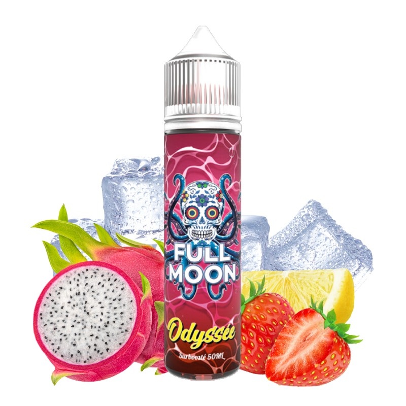 Découvrez l'e-liquide Odyssée Abyss Full Moon 50ml, une association de fruit du dragon, fraise, citron et une touche de fraîcheur.