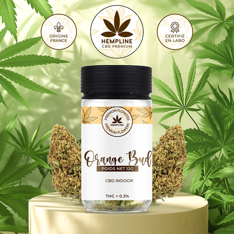 Découvrez la fleur de CBD Orange Buds de Hempline, une variété fruitée aux arômes d’agrumes, de citron, d’orange et de nectarine, idéale pour une relaxation naturelle.
