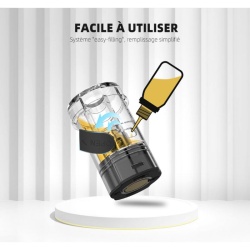 La cartouche de 6ml, facile à remplir grâce à son système de remplissage latéral, offre une capacité généreuse pour vos e-liquides préférés, idéale pour une utilisation prolongée sans recharge fréquente.